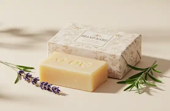 Branded wraps with purposeful designs. This is done to reflect the craftsmanship of your soap and leave a strong visual impression.