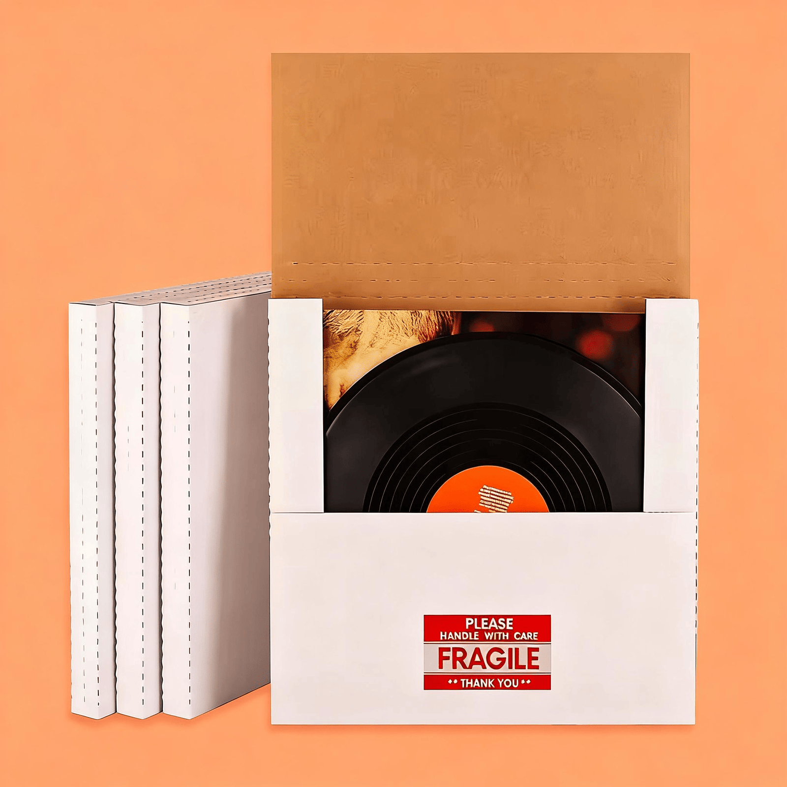Secure, durable mailers designed specifically for vinyl records. Sturdy cardboard construction with padded interior to prevent warping and damage. Fully customizable with your branding. Wholesale pricing available. Order today!